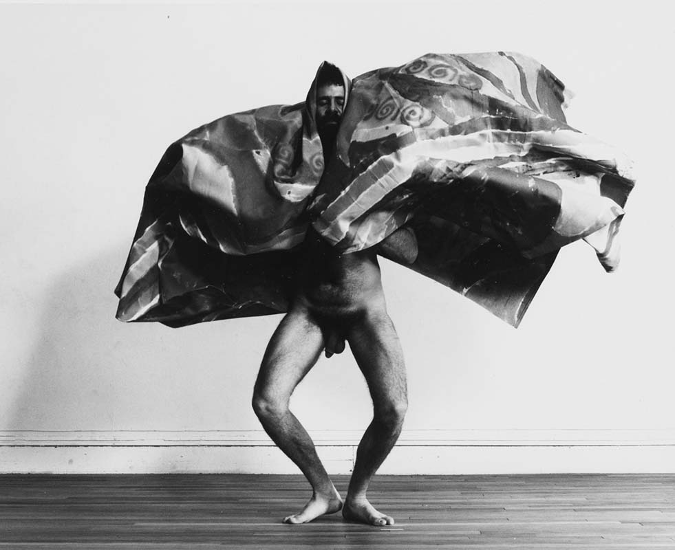Grâce à des photographies d’archives (fonds Shunk-Kender, bibliothèque Kandinsky), l’artéfact proposé par le peintre Robert Kushner prend vie : la performance de 1976 documentée ici en image rappelle que sa peinture faisait dialoguer une gestualité calligraphique de la ligne et un intérêt pour les collections de tissus de Matisse avec une implication du corps dans l’espace artistique, liée à l’émergence du « performance art » dans les États-Unis des années 1970. Une autre contributrice d’Artifacts est d’ailleurs liée également à ces nouvelles pratiques, Laurie Anderson, généralement plus connue pour sa carrière de pop star dans les années 1980. Avant cela, l’artiste se fait connaître dans les cercles underground new-yorkais à travers un nouveau type d’art total, mixant les rythmes binaires de la new-wave avec des expériences performatives et poétiques. Ses interventions scéniques sont pensées comme de véritables installations visuelles et sonores ainsi que le suggère sa participation à la Biennale de Paris en 1975 et son dessin de 1977 pour Video Duet (From « Six Rooms », a Proposal) [Duo vidéo de la série « Six Pièces », une proposition]. Anderson participe et initie de nombreux projets au sein desquels on retrouve les expériences de pionniers avant-gardistes autour du son, de la poésie et de la performance comme John Giorno, Nam June Paik, Trisha Brown ou encore une fois Philip Glass.