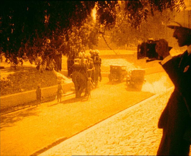 Yervant Gianikian et Angela Ricci Lucchi dissèquent des portraits de famille de la haute bourgeoisie britannique filmés en Inde en 1928 et 1929, au moment des tensions anticoloniales. Ces images intimes et anecdotiques, accompagnées de textes d’Henri Michaux et de Mircea Eliade chantés par Giovanna Marini, révèlent un rapport exotique à l’autre. Celui-ci n’a pas voix au chapitre et c’est à l’arrière-plan, au fond du photogramme qu’il faut en trouver la trace. Parallèlement à ces images de processions à dos d’éléphants et de garden parties, où la richesse s’exhibe et la curiosité s’affiche, des séquences donnent à voir la pauvreté et l'exploitation des terres et des âmes, ouvriers et enfants. Les regards traqués, ralentis, montrés plusieurs fois révèlent la douleur et la révolte des colonisés. Ce tourisme colonial, que l’on retrouve dans Pays barbare, n’est déjà plus celui de l’explorateur : il prépare le tourisme de masse, le tourisme vandale. Le travail d’anthropologie sociale de Yervant Gianikian et Angela Ricci Lucchi n’a jamais été aussi puissant.