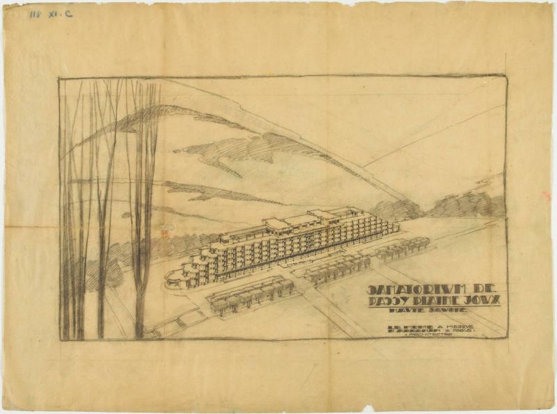 Plan du rez-de-chaussée du bâtiment central, 18 chambres par étage