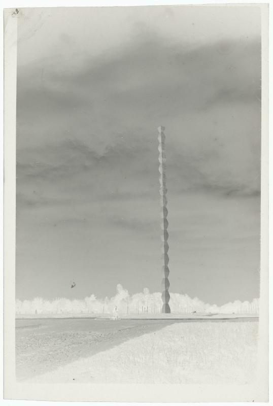 Vue générale à contre-jour et sur ciel barré de La Colonne sans fin de...