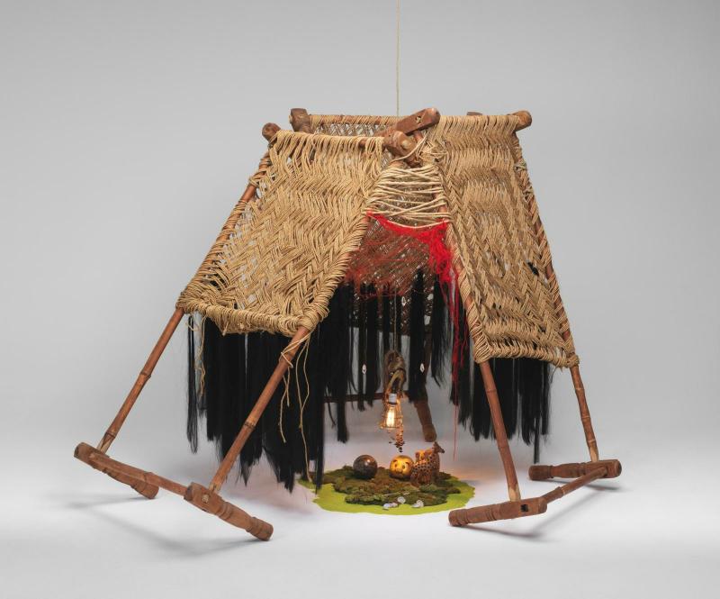 | Techniques | technique mixte (3 lits en bois et cordes, verroterie, cheveux synthétiques, animaux en plastique et bois, mousses synthétiques, sable coloré, lampe ? |