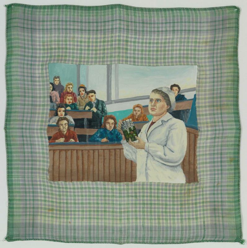 Peinture-mouchoir n°2 (Infirmière donnant un cours sur un pot de poivr…