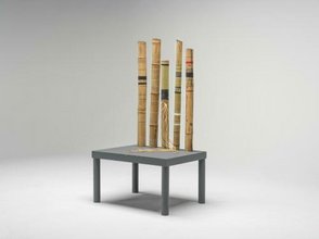 Dolmen belongs among Andrea Branzi’s reflections on the “Primitive Metropolis” (2014), an exploration of mankind’s fundamental, archetypal condition of “becoming-animal. ” These “models” suggest both a megalithic site and an enigmatic library of “signs”. The watching figure twisted atop its perch recalls the gorilla/man of Francis Bacon’s painting, in midmetamorphosis from human to animal. In another model, the erratic disposition of stones and rugs calls to mind the mantra motifs of Maisons à plan central (1987) whose architecture is conceived as a ritual around objects.