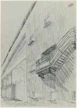 | Main title | Perspective Etude pour l'ensemble crèche et école, petit bâtiment, entrée et terrasses, façade sud | |