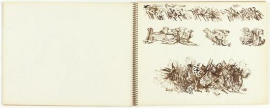 Carnet (Indissociable set of artworks) Carnet relié à spirales métalliques, couverture en carton. Carnet comportant 16 feuillets dont 16 pages de dessins et 16 pages vierges. La deuxième et troisième de couverture sont vierges. 1962 | |