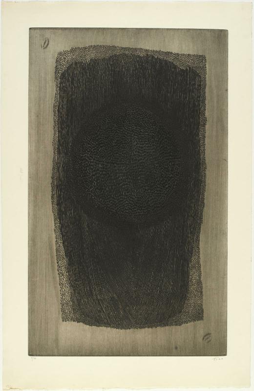 | Techniques | Eau-forte noir et vert à la gouge sur papier vélin |