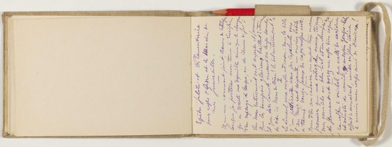 Carnet relié, couverture en toile.