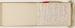 Carnet (Indissociable set of artworks) Carnet relié, couverture en toile. Carnet comportant 46 feuillets dont 13 pages de dessins, 1 page de collage, 31 pages de notes et 47 pages vierges. La deuxième et troisième de couverture sont vierges. Un feuillet déchiré | |