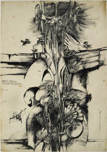 Techniques | Encre de Chine, gouache, lettres et papiers adhésifs sur papier vélin |
