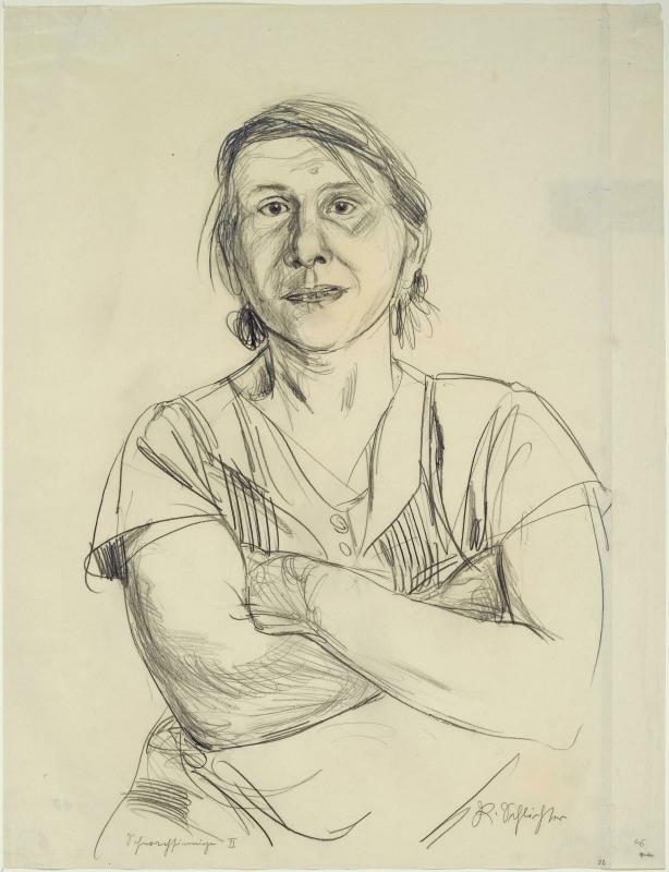 Violent, sans concessions, ce portrait vériste est à rapprocher des œuvres que Dix, Grosz ou Hubbuch réalisent à la même époque. L’aliénation mentale devient ici la métaphore de l’aliénation sociale, de la solitude et du désarroi contemporains allemands. Révélatrice d’une fascination exercée par la folie, cette Demeurée est à rapprocher des Monomanes de Géricault exécutés entre 1819 et 1824 comme des portraits et autoportraits dessinés par Antonin Artaud dans les années 1945-1946.