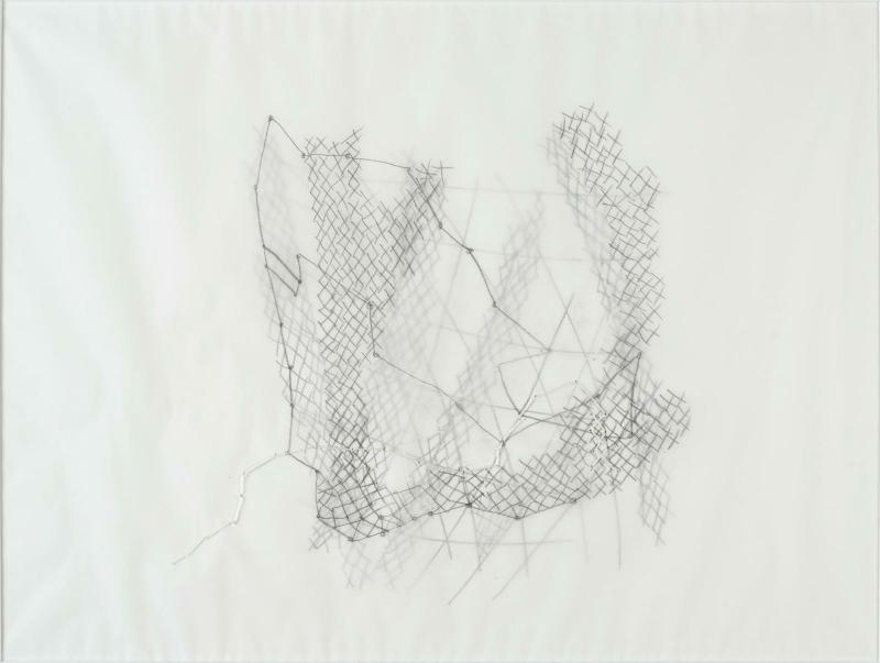 | Techniques | Mine graphite et fil de coton cousu sur papier calque |