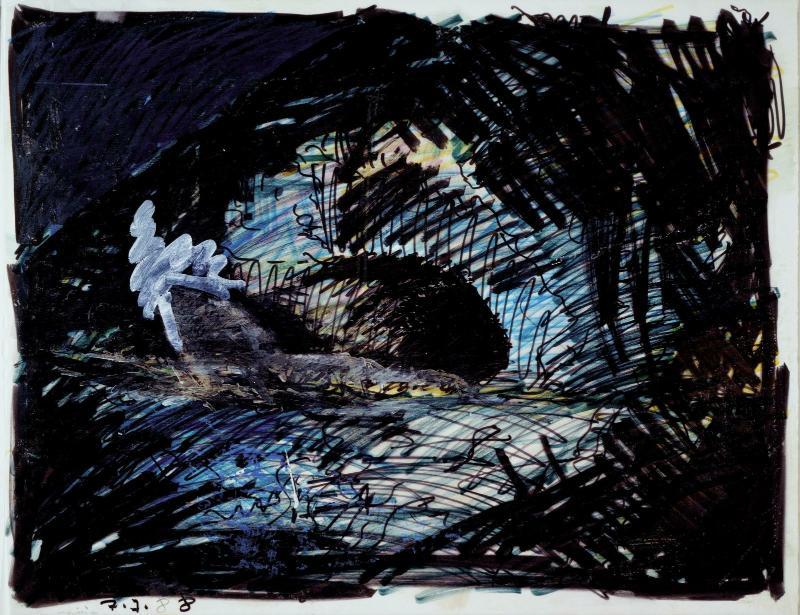 | Techniques | Feutres et acrylique sur calque monté sur papier |