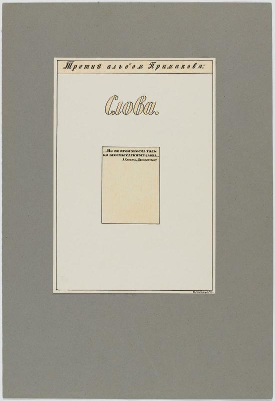 | Is part of the set | Primakov, celui-qui-est-assis-dans-l'armoire Album (Indissociable set of artworks) Album de 47 planches dans un emboîtage. Emboitage en carton recouvert de cretonne à fleurs avec une étiquette. 1971-1974 53,1 x 37 x 6 cm Planche 31 | |