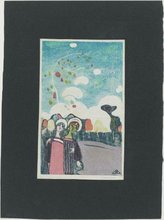 | Main title | Der Schleier, Reitermotiv in ovaler Form, Blätter, Bunte Wiese (Le Voile, Motif de cavalier dans une forme ovale, Feuilles, Pré bariolé) |