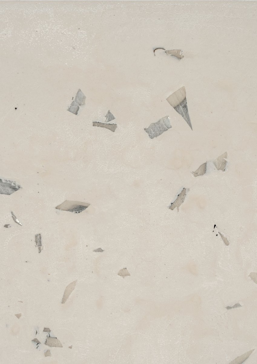 Traversée des états, 20232 panneaux de Terrazzo, vinyle, cassette et cd broyés, ciment, colle | |