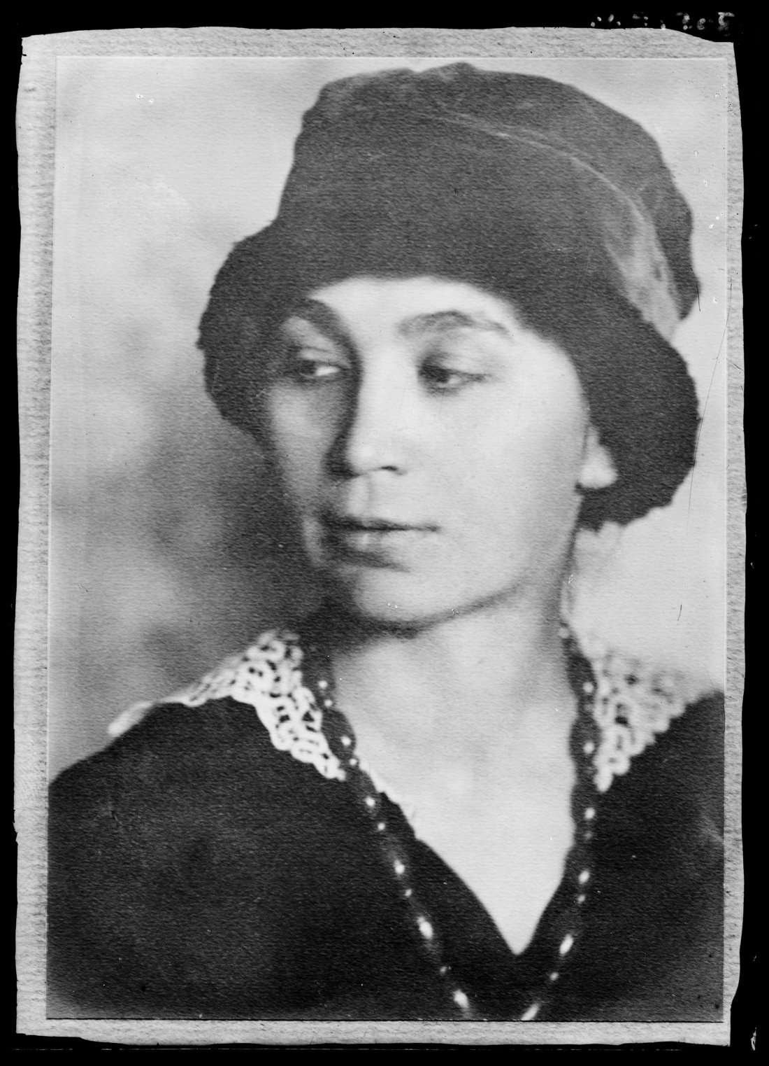 Elle est moscovite et toute sa figure atteste le sang kalmouk qu’elle ne renie point. On ne saurait dire qu’elle est belle, mais ne laisse pas que d’avoir une grâce piquante et singulière qui lui vaut rapidement la sympathie de ceux qui l’approchent. Et tout particulièrement encore par une modestie qui ne se dément jamais et par l’ingénuité de son rire.*