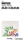 La exposición «Matisse, 1941 — 1954», de una envergadura sin precedentes en Francia, pone de relieve los últimos años creativos del artista, un período de síntesis, radicalidad e invención formal. La muestra reúne más de 300 obras que dan fe del extraordinario ímpetu creativo de Matisse durante esta etapa especialmente prolífica. A sus casi 80 años, el artista se reinventó mediante el uso del papel gouache recortado, técnica con la que renovó por completo su vocabulario plástico y le confirió a su arte una dimensión monumental. Esta exposición traslada al visitante al último gran taller de Matisse, agrupando pinturas, series de dibujos, libros ilustrados, gouaches recortados, textiles e incluso vidrieras, todo lo cual refleja esta última era de gracia.