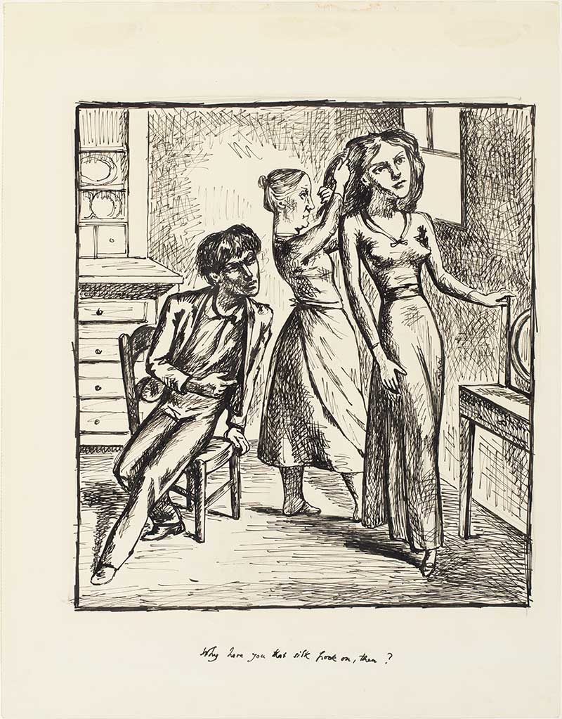 Balthus (Balthasar Klossowski de Rola, dit), Illustrations pour « Les Hauts de Hurlevent » "Why have you this silk frock on, then?" ("Alors pourquoi as-tu cette robe de soie ?") 1933 - 1935