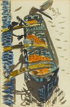 Ainsi, dans une communauté d’esprit avec Georges Bataille, Roger Caillois et Michel Leiris, il confronte l’art contemporain et l’ethnographie à travers une série d’ouvrages tels qu’Une fête en Cimmérie (1947-50), où le texte poétique de Duthuit sur les Inuits est accompagné de lithographies de Matisse. A la suite de son exil à New York pendant l’Occupation, il se fait passeur entre les deux scènes artistiques, dirigeant une revue parisienne de langue anglaise Transition, de 1948 à 1950, avec la complicité amicale de Samuel Beckett. Il défend de nombreux artistes installés à Paris – Bram Van Velde, Sam Francis, Jean-Paul Riopelle, Giacometti... – et se lie aux poètes André du Bouchet, René Char et Yves Bonnefoy.