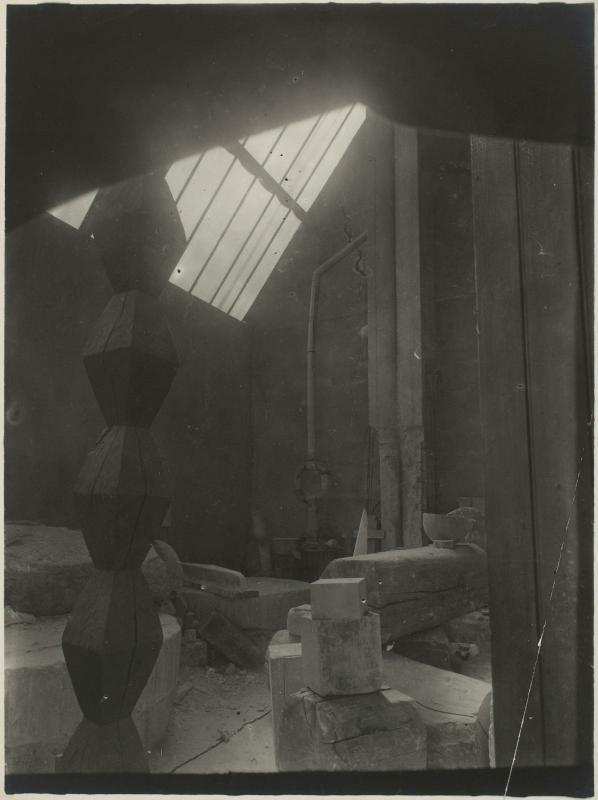 Vue de l'atelier : La Colonne sans fin (v.1925), Oiseau plâtre ?,...