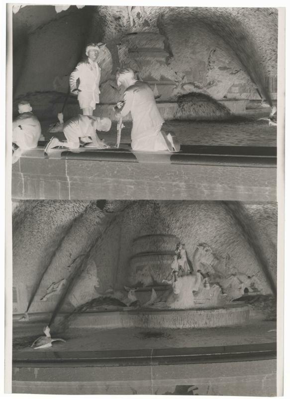 Reproduction d'une photographie d'une fontaine à contre-jour