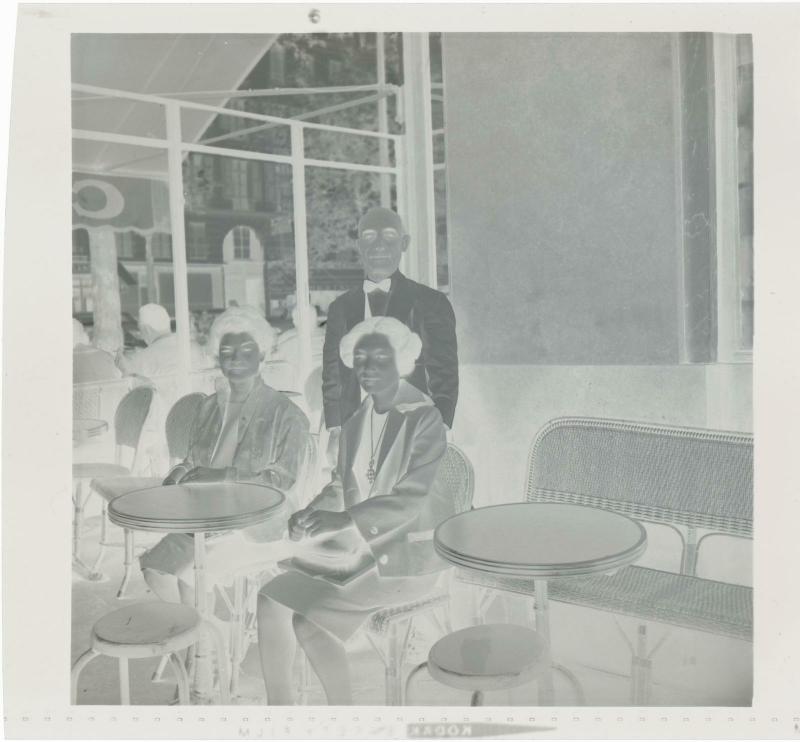 Juliet Man Ray et Aiko Miyawaki à la terrasse du Café de Flore à Paris