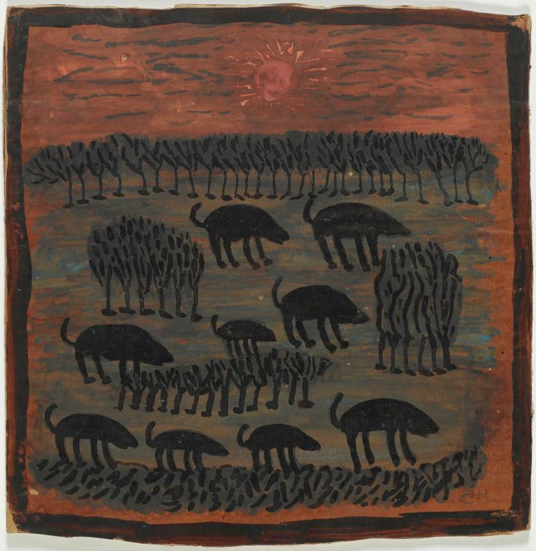 | Técnica | Gouache et encre sur carton d'emballage |