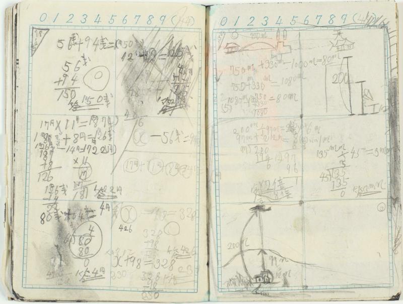 | Conjunto | Sans titre (Carnet de la Villa Kujoyama au Japon) Carnet (Conjunto indisociable) Carnet relié, couverture et dos en papier fort. Carnet comportant 38 feuillets dont 16 pages de dessins, 30 pages de dessins et notes, 20 pages de notes et 10 pages vierges. Un feuillet est manquant. (Il s'agit du feuillet qui aurait été numéroté 57 et 58). La deuxième de couverture est vierge et la troisième de couverture comporte des notes. 2007 | |