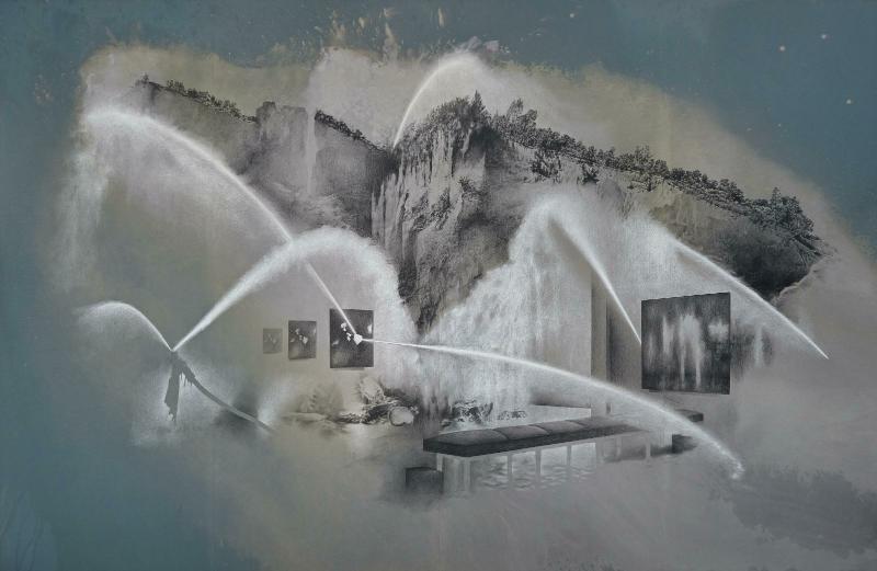 | Técnica | Crayons de couleur et eau de javel sur papier marouflé sur toile |
