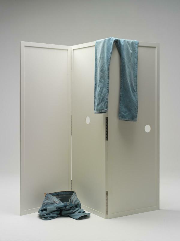 | Técnica | Paravent, deux paires de jeans 501, porte-papier toilette, papier toilette |