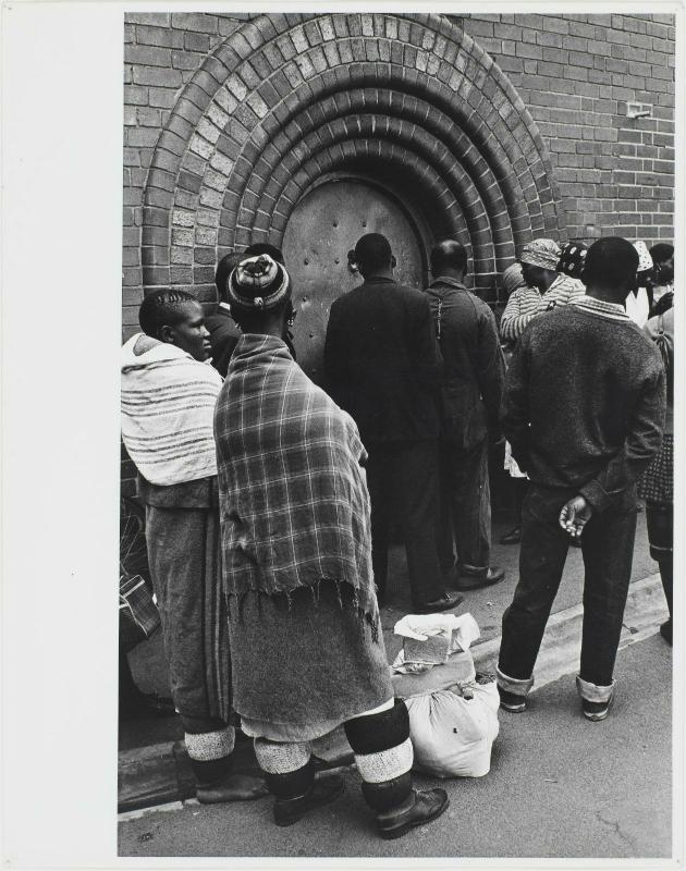 | Título principal | Relatives of the arrested come to door of jail. Some bring money for fines, others bring food. |