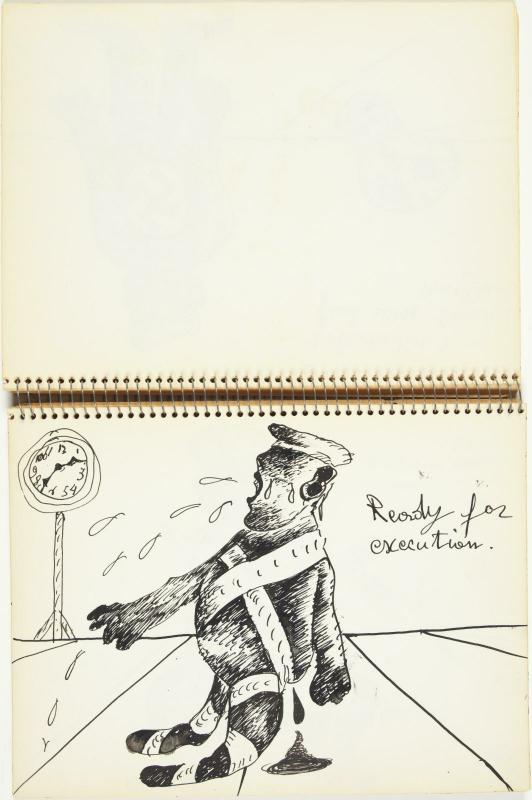 | Conjunto | Carnet de dessins N°6 Carnet (Conjunto indisociable) Carnet relié par une spirale métallique, couverture et dos cartonnés. Carnet comportant 118 feuillets dont 9 page de dessin, 50 pages de dessins et notes et 59 pages vierges. La deuxième de couverture comprend des notes, la troisième de couverture est vierge. 1971. 30,5 x 24,2 x 1,6 cm | |