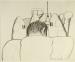 Par les différents éléments ici réunis – les têtes encapuchonnées, l’ampoule électrique, la fenêtre et l’homme vu de dos –, ce dessin est non seulement exemplaire de la dernière période de l’artiste, mais aussi particulièrement complexe et abouti : ironie d’une histoire d’aveugles et de sourds dans un monde déshumanisé et prisonnier, efficacité d’un graphisme sommaire, mais qui se déploie avec force sur la feuille blanche. Ces éléments sont présents isolément ou assemblés différemment dans un certain nombre d’autres dessins, dont les meilleurs sont déjà dans des collections publiques (MOMA, Tate). Cette feuille-ci ne semble pas pouvoir être mise en rapport direct avec une peinture ; l’homme vu de dos, entouré de deux personnages encapuchonnés, se retrouve cependant dans la peinture Sheriff (1970, coll. part.), qui figurait dans la célèbre exposition de la Marlborough Gallery en 1970.