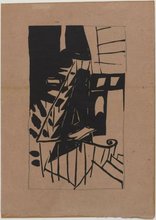 BERNINGER (Herman), CARTIER (Jean-Albert) . - Jean Pougny (1892-1956) : Catalogue de l''oeuvre : Tome 2, Paris-Côte d''Azur, 1924-1956, peintures. -Tübingen : Ed. E. Wasmuth, 1992 (cat. n° 828 cit. et reprod. p. 213 (titré "Chaise noire, boîte à couleurs et palette", daté "1944-1945", dimensions 36 x 37 cm.")) . N° isbn 3-8030-3045-5