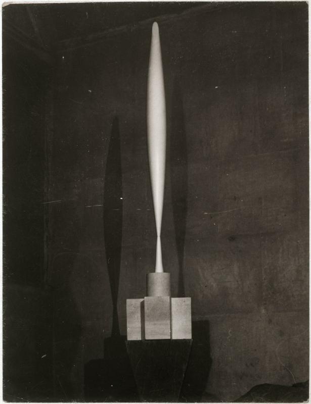 Vue de nuit de l'atelier : L'Oiseau dans l'espace, marbre blanc (1925), Ebauches