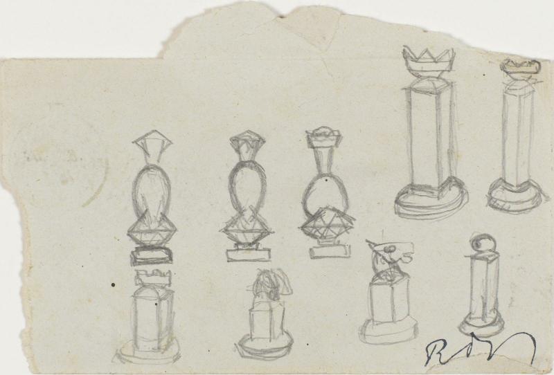 | Conjunto | Etudes de pour pions d'échecs Série (Conjunto disociable) Série de 33 dessins dont 6 recto-verso vers 1918 | |