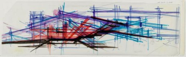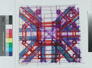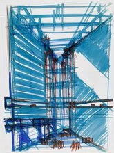 | Técnica | Feutres vert, bleu, mauve et noir sur calque | |
