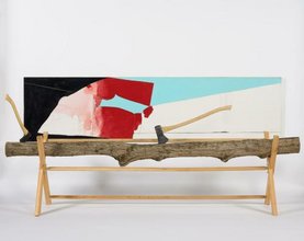 | Técnica | Acrylique sur toile, scie métallique, morceaux de bois, câble jaune |