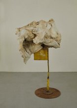 Pour sa série de sculptures The Blind leading the Blind, Buggenhout agglomère des matériaux de rebut pour créer des œuvres informes qui perturbent nos critères de goût et de dégoût.