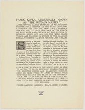 F. Kupka - A. Mucha : oeuvres exposées : Paris, Musée des écoles étrangères contemporaines, Jeu de Paume des Tuileries, juin 1936. - Paris : Ministère de l''Education nationale, 1936 (cat. n° non-détaillé (entre n° 4 et 13))