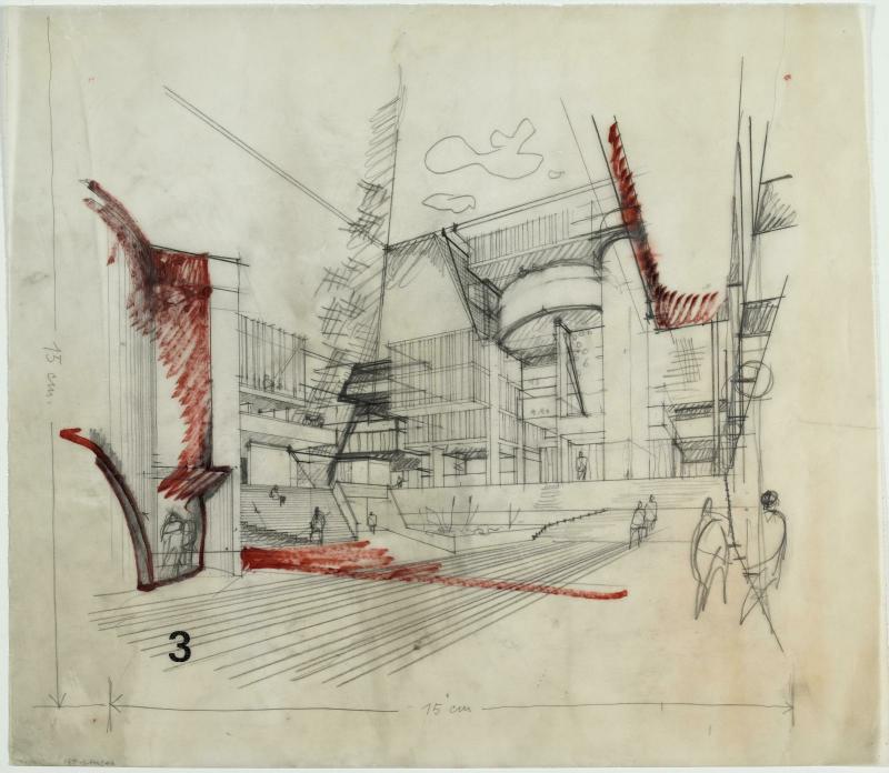 | Título principal | Perspective de la place intérieure, entrée piétonne | |