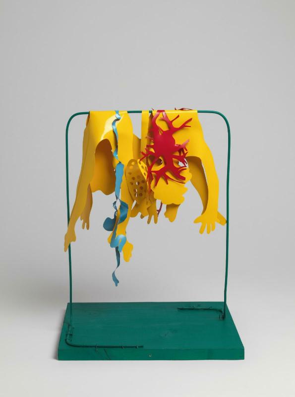 Commencée en 1968, sa série Hanging est la plus caractéristique de son travail. Suspendues à des cintres ou à des portants qu'elle voyait défiler dans son quartier new yorkais, ces silhouettes déshumanisées, taillées dans du vinyle coloré, sont fabriquées à partir de découpages épousant les contours de corps allongés sur papier (le sien ou celui de ses proches). Ces formes souples et désarticulées et ce cœur artificiel sont à la fois des contrepoints terrestres de ses œuvres et une critique de la société de masse.