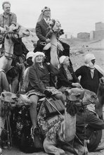 Groupe de touristes norvégiens près des pyramides de Gizeh, Egypte