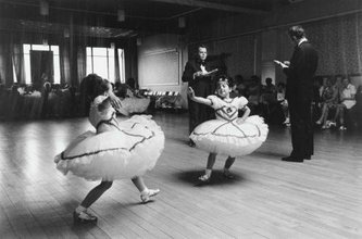 Petite filles dansant dans la salle de bal du Savoy, Bargoed, pays de …