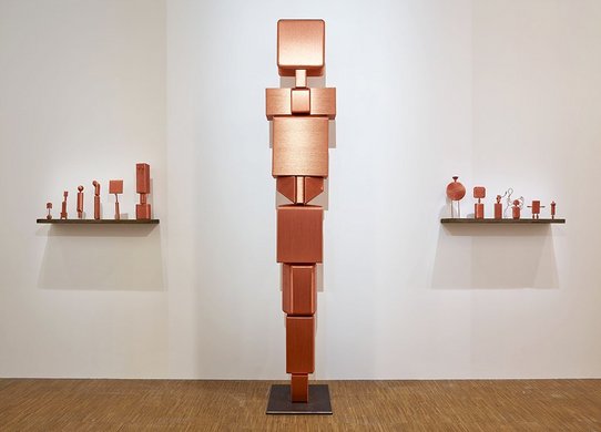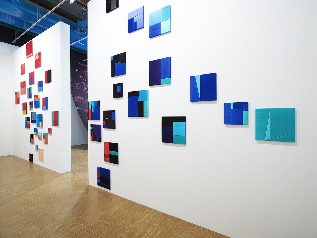 Dans un monde où l’intelligence artificielle préside à la destinée de l’humanité, qu’avons-nous à apprendre de notre corps dans son rapport à l’univers et à ses propres « algorithmes », s’interroge Alice Anderson. En résonance avec les pratiques ancestrales des Indiens Kogis de la Sierra Nevada en Colombie, où elle a souvent séjourné, elle crée ses œuvres lors de danses-performances, tantôt fulgurantes, tantôt méditatives. En activant par des gestes précis certains objets technologiques ou des formes choisies, l’artiste les « mémorise » avec du fil cuivré, symbole de la connectivité numérique. Ils se muent en autant de Machines spirituelles, statuettes ou totems contemporains, ou encore en tableaux-icônes à la surface métallique tissée de fil coloré. Lors des Danses géométriques, elle établit, seule ou avec d’autres performeurs, une communication profonde avec de vastes toiles en utilisant des éléments peints, issus de données (« data ») architecturales correspondant à des lieux précis, pour créer des motifs. Ces œuvres trouvent un prolongement avec The Ritual of the Shapes, danses-performances au cours desquelles ces peintures monumentales, manipulées, pliées ou froissées, se transforment en sculptures.