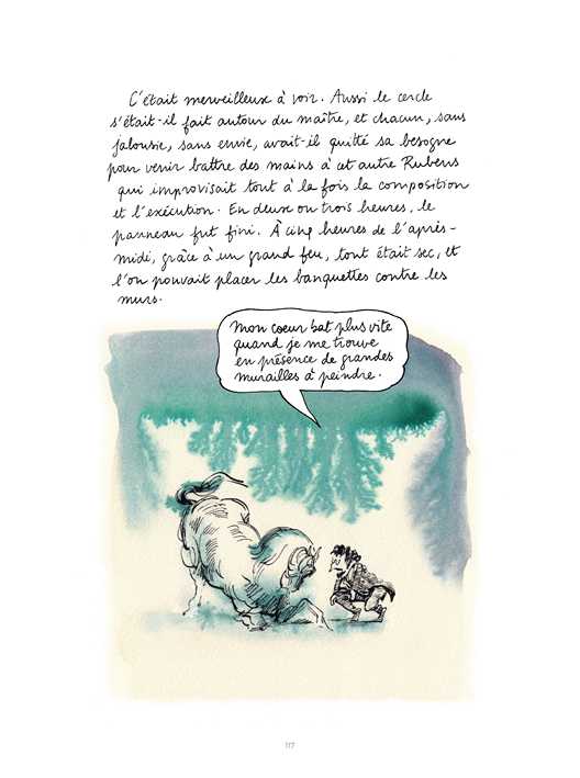 CM — Je ne me pose pas la question de mon évolution artistique, même si je fais de mon mieux pour m’améliorer et ne jamais me répéter. Cette évolution se fait au gré des rencontres, des envies. Avoir cessé de pratiquer le dessin de presse me permet de consacrer plus de temps à la peinture, à la réalisation d’albums personnels, parfois hybrides (entre livre illustré et bande dessinée, comme Delacroix). Je redécouvre la lenteur, mon cerveau ne travaille plus de la même manière. Il ne réagit plus au quart de tour pour synthétiser un fait politique en deux coups de crayon, il prend le temps de laisser infuser des idées et des impressions, et de choisir les outils pour les illustrer : la gouache plutôt que le feutre expéditif, le papier satiné plutôt que le papier machine. Ce nouveau rapport au temps de la création, qui m'entraîne parfois sur le terrain de la poésie, me convient parfaitement aujourd'hui. ◼