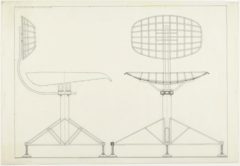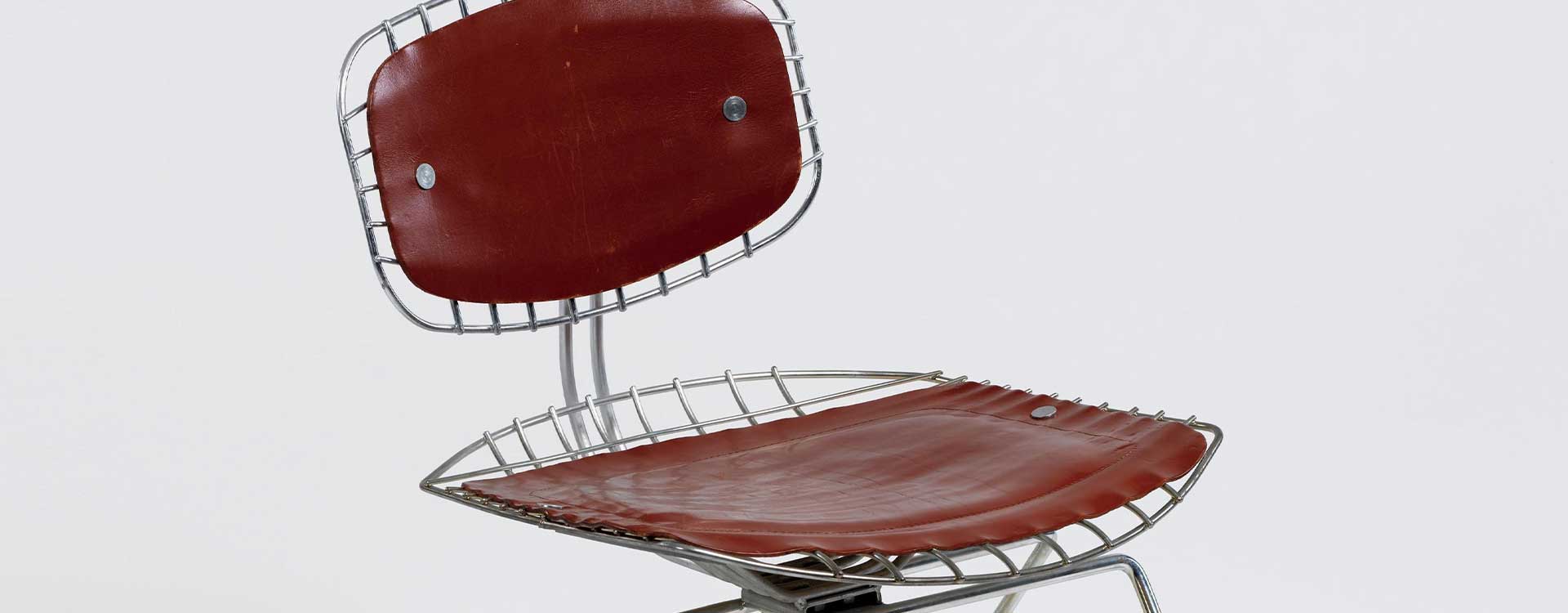 Parmi les pièces du programme dit « Treillis », édité par TEDA et fabriqué par Georges Laurent, la chaise Traîneau impose sa silhouette : une structure en fil d’acier électrozingué formant deux patins continus, sur laquelle viennent se poser une galette et un dossier en cuir, qui rappelle la chaise en treillis de métal conçue par Harry Bertoia pour Knoll en 1950. Pensée pour les espaces publics du Centre, notamment la toute nouvelle Bibliothèque publique d’information (Bpi), elle répond à un usage intensif et collectif. Plus qu’une simple assise, elle devient l’un des rouages visibles de la machine Beaubourg — son autre nom est d'ailleurs la chaise « Beaubourg ».