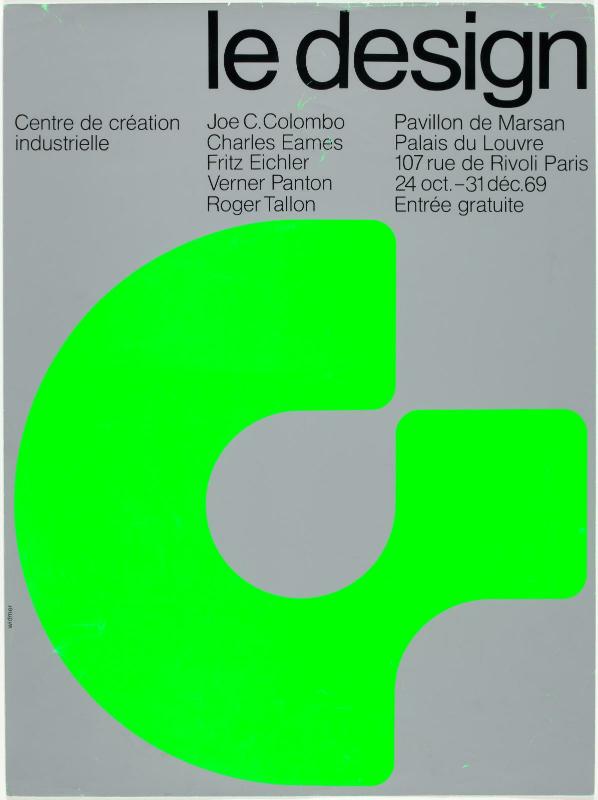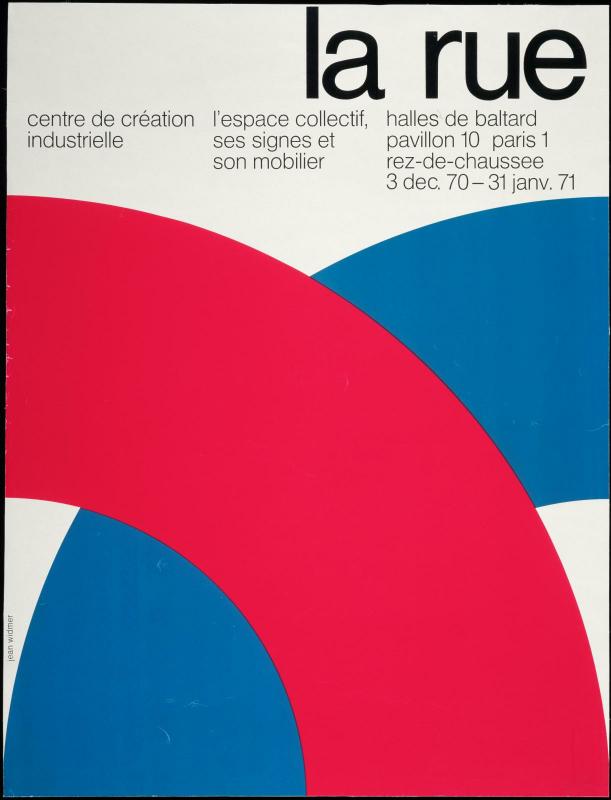 Ce travail au long cours joue un rôle déterminant dans l’installation de l’identité visuelle du Cci et dans la reconnaissance du design comme sujet culturel. Il constitue aussi un jalon essentiel dans le parcours de Jean Widmer, bien avant qu’il ne signe, en 1977, le célèbre logo à bandes du Centre Pompidou. Avec les affiches du Cci, Widmer affirme une modernité graphique exigeante, où la radicalité naît du refus du superflu. ◼