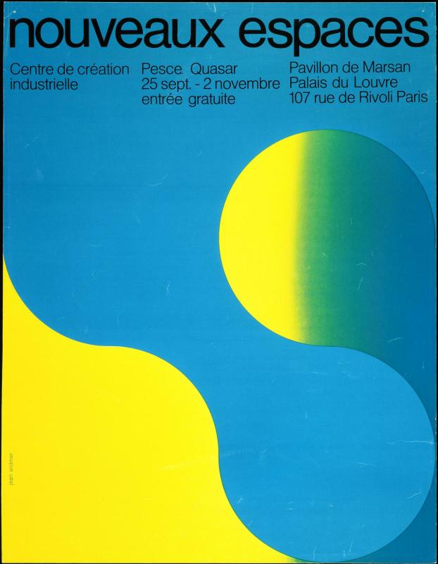 Dès 1969, Jean Widmer est chargé de concevoir les affiches des expositions du Cci. L’enjeu dépasse largement la communication : il s’agit de donner une forme visuelle à un projet intellectuel inédit, encore largement méconnu du grand public.