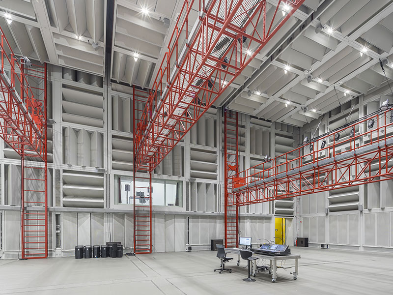 Vivre au sous-sol permet d’échapper aux nuisances de la ville, malgré un inconvénient majeur : des dizaines de badauds désorientés descendaient chaque jour les marches en pensant y trouver… une bouche du métro parisien ! Mais une fois les portes franchies, c'est un calme olympien, loin du bruit. Surtout dans la célèbre chambre anéchoïque. Cette gigantesque boîte sur ressorts, coupée du reste du bâtiment, dont l'ensemble des parois est recouvert de matériaux qui piègent le son, permet de goûter à un silence quasi absolu. Il y règne seulement un bruit résiduel de quinze décibels et… tous ceux produits par les corps des personnes qui s'y trouvent. Gargouillis et battements de cœur deviennent aussi assourdissants qu'un concert de métal.